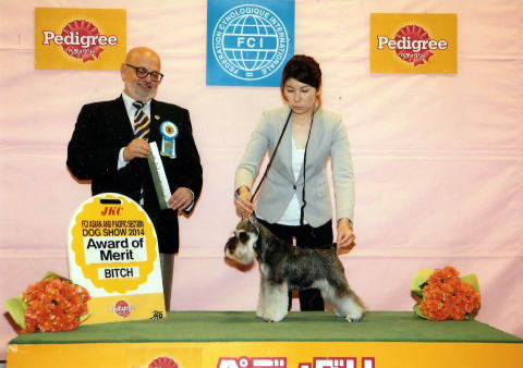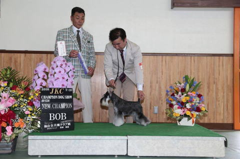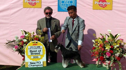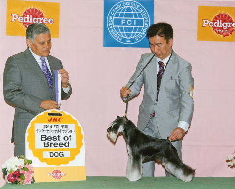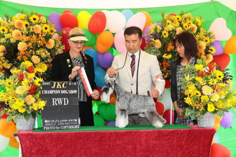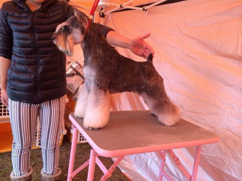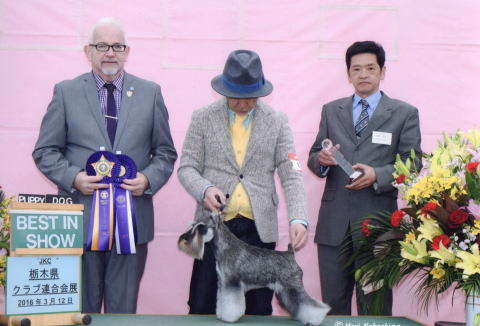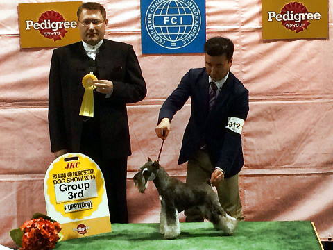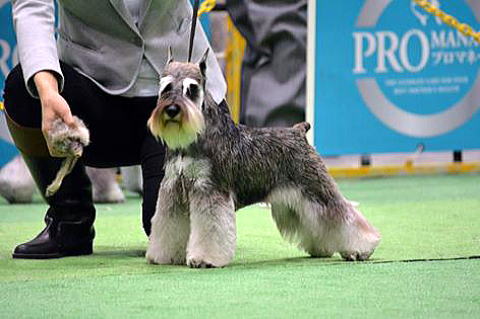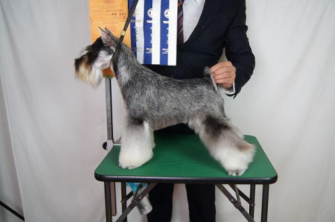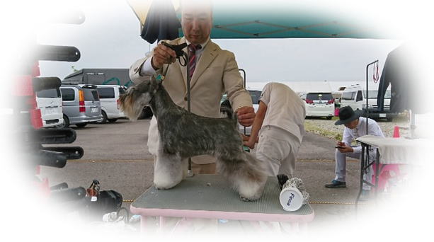 | ミニチュアシュナウザーのプロフェッショナルを目指すため、グルーミングやハンドリングを自分で行うオーナーハンドラーとしてドッグショーへ参加しております。 ハンドリング技術や経験が乏しいオーナーハンドラーがプロに勝つためには、プロより良い犬を持っていくことだけです。 そして、ショーに勝てなかったとしても「あの犬が一番いい犬だね」と誰かに言ってもらえる犬を持っていくこと。 犬とハンドラーが努力を重ね強固な信頼関係が生まれパートナーとして完成させた時、犬は未熟なハンドラーを助けてくれるし、必ずチャンスは訪れます。犬のタイトルやネームバリューに拘ったり、頼ったりしたブリードを行うのであれば、プロに依頼し多くのチャンピオンを完成すれば済む事ですが「タイトルや肩書きは遺伝しないから! ブリードして良い子犬を得る事に、タイトルは何の手助けにも足しにもならない」ので、自らの技術や見識を高める事を目標としてオーナーハンドラーでチャレンジしています。必要なのは、後世に受け継がせる優秀な遺伝子を持っているかどうかだけ。 これからも我が家の素敵な犬と信頼関係を深める努力を重ね、楽しみながらドッグショーへチャレンジしますので応援してくださいね。 |